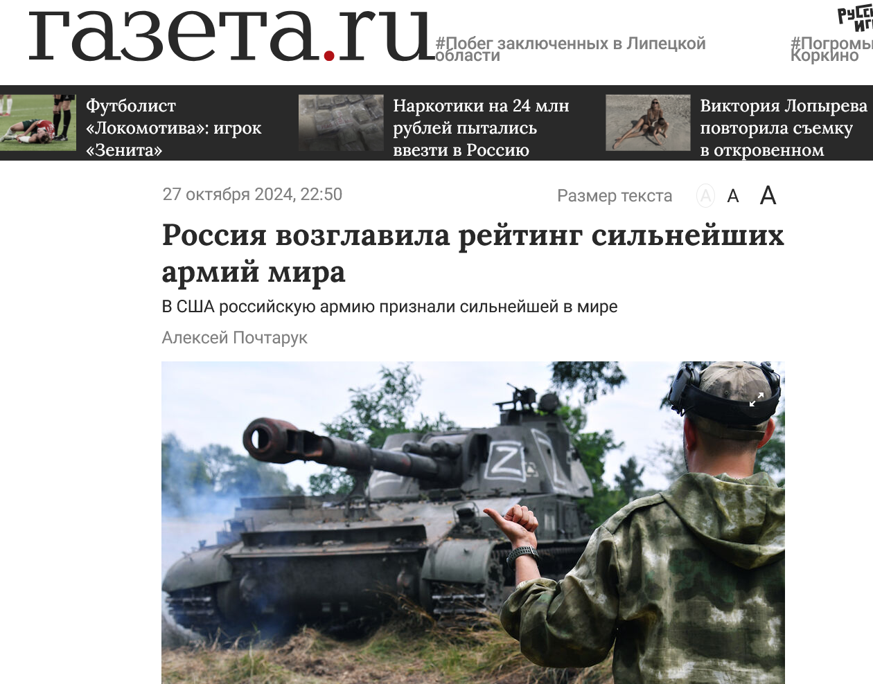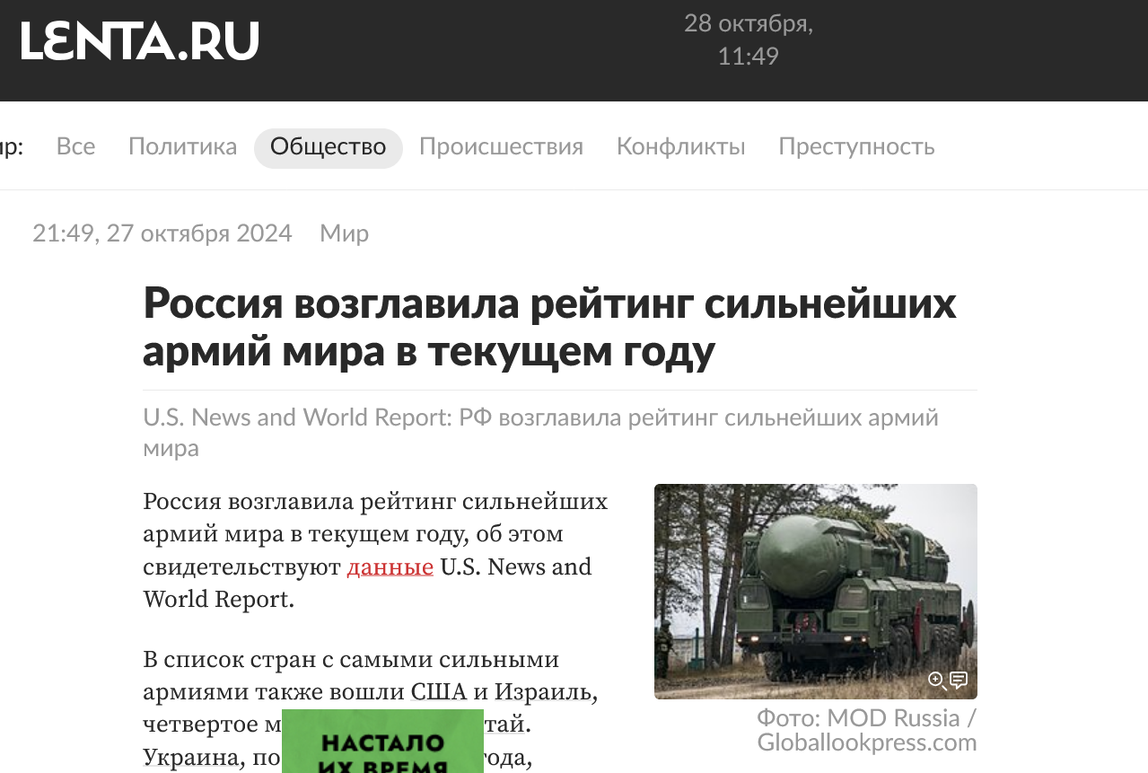 А тут внезапно во вполне уважаемом американском издании USNews опубликовали "рейтинг самых сильных армий мира", и армию РФ там поставили аж на первое место!