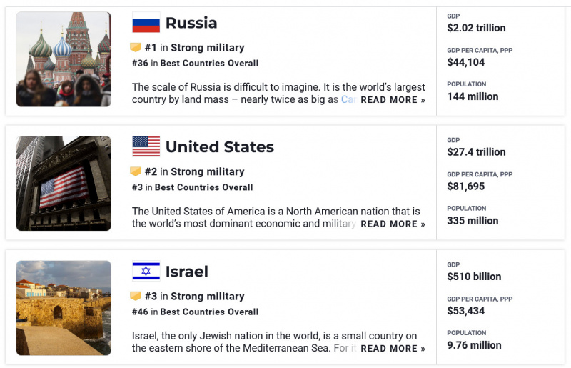 Был бы Израиль побольше размерами, и вкладывайся больше в рекламу своих войск - быть ему на первом месте.