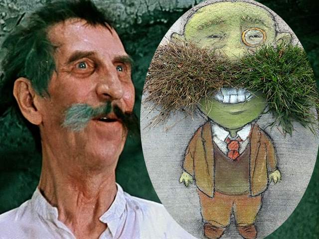 "В зеркальце отразились большой нос и зелёный, как молодая травка, левый ус. Ипполит Матвеевич поспешно передвинул зеркальце направо. Правый ус был того же омерзительного цвета."