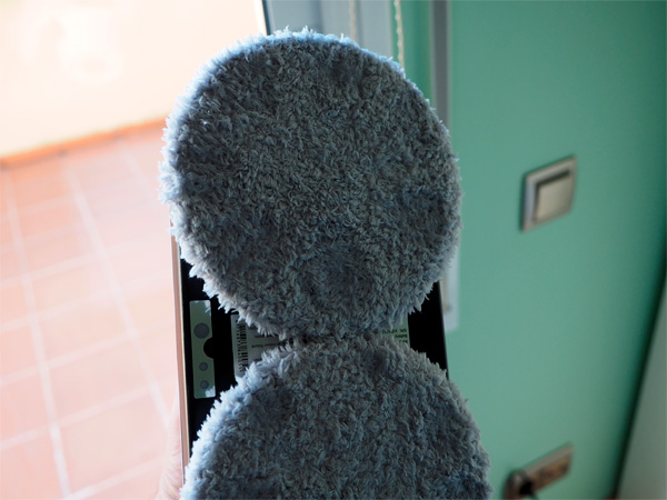 Теперь мои наблюдения и впечатления. Чистит стекла, в общем, нормально, но долго. Вот эти мои раздвижные панели (они, правда, высотой во всю стену) одну сторону одной панели - где-то порядка 15 минут. Две стороны - полчаса, две панели - час, а в инструкции рекомендуют делать два прохода робота: первичный и чистовой, для полировки. Таким образом, на полную обработку двух панелей можно потратить два часа и тут проблема в том, что робот завывает как не сильно маломощный пылесос. При этом помощница по хозяйству эти две панели полностью моет где-то минут за двадцать. А тут два часа сплошных завываний.