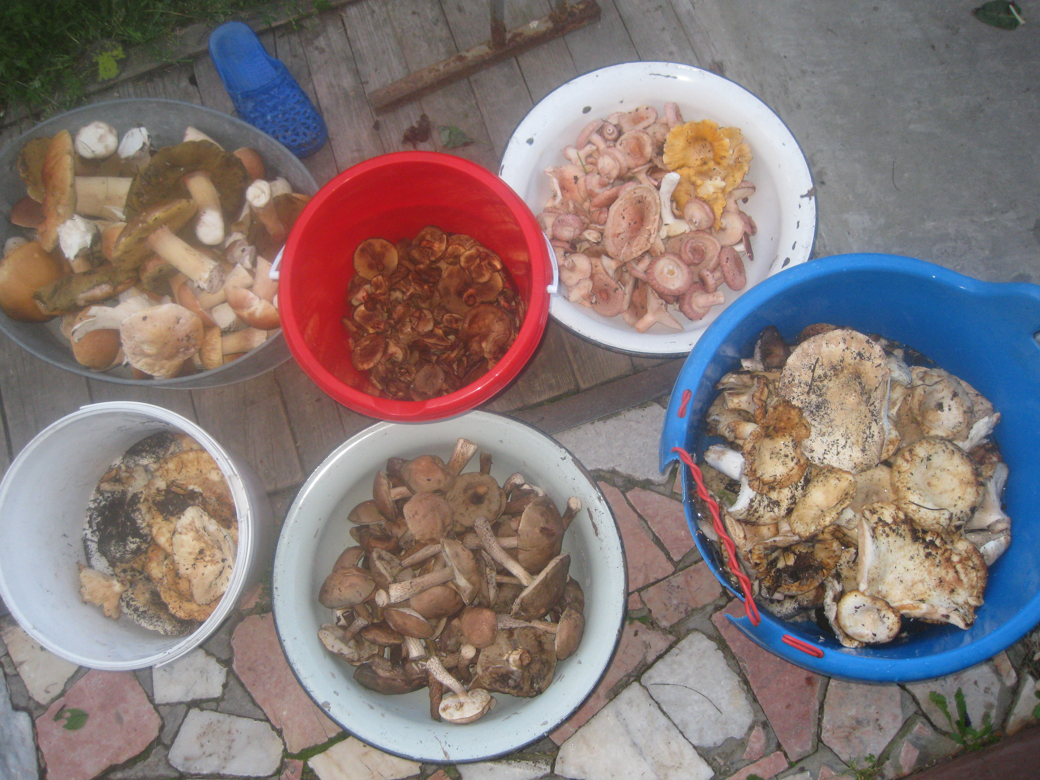 Тут вы правы. Слева - белые, в центре свинушки (свинухи), нижний ряд: в центре подберёзовики, по краям грузди разных пород.