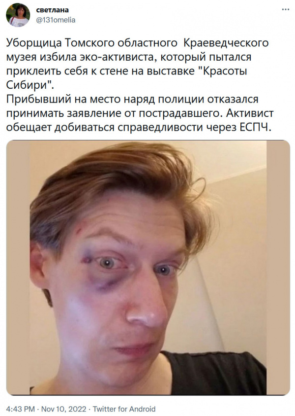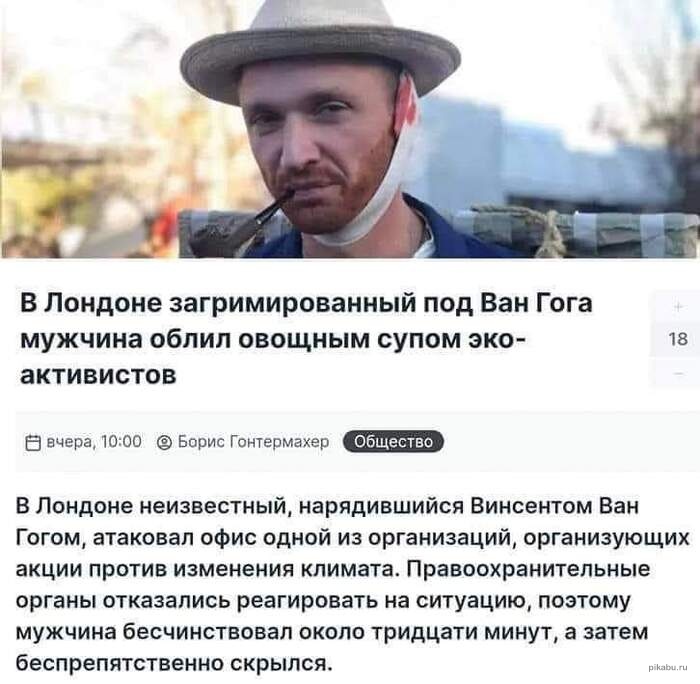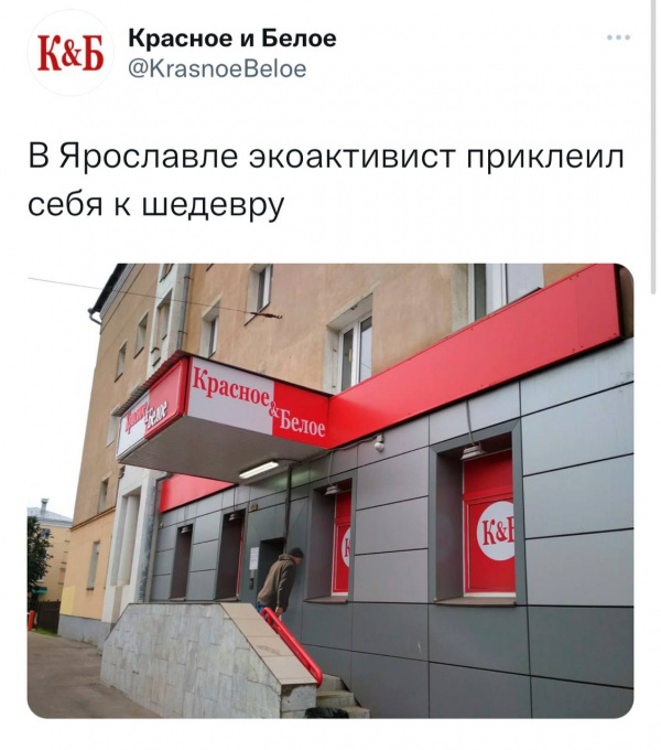 В России тоже есть свои экоактивисты, как выяснилось. Но они не такие тупые, как европейские эко-уродцы. Вот один из них, например, приклеил себя не к картине Ван Гога или, на худой конец, к мазне Глазунова, а к магазину с бухлом - правильное решение, как я считаю!