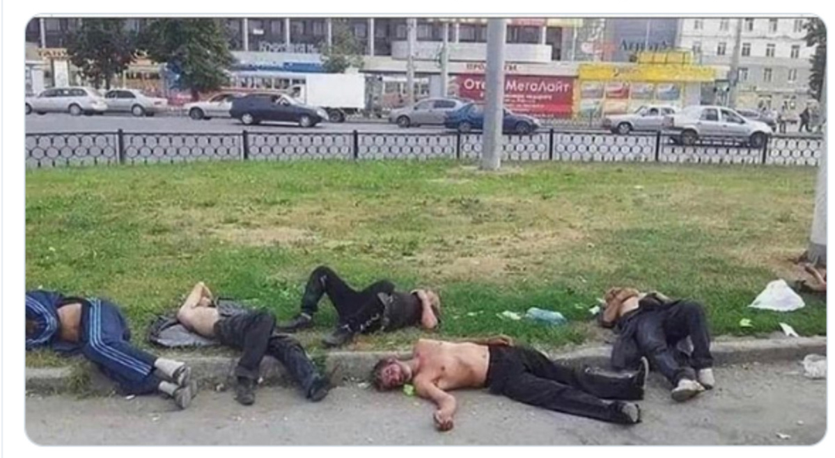Вы просто не бывали в т.н. рабочих районах. Я в таком работаю, там вокруг общаги, которые строили для работяг завода им.Свердлова (щас Пермские моторы), с соответствующим контингентом. Ещё лет 10 назад Крохалевка имела славу алконариковского гетто, так что там периодически, в основном летом, можно увидеть нечто подобное. Но справедливости ради, сейчас таких откровенных маргиналов там уже гораздо меньше.