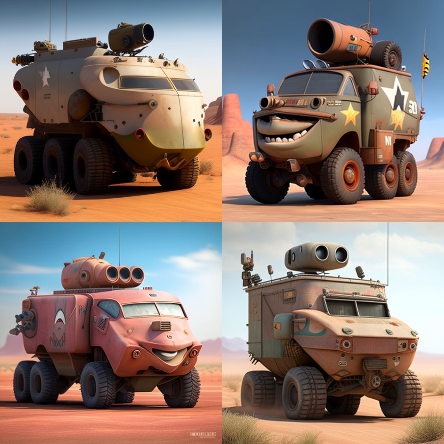Еще полгода назад, например, мне миджорни нарисовала такое на запрос "хаймарс как персонаж тачек".