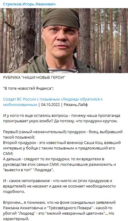 Самое смешное, что Гиркина не смутил последний абзац, хотя как по мне это как раз высшая форма саботажа того самого Саши Коца и остальных.