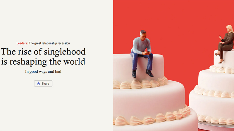 В издании The Econimist статья о том, что рост числа одиноких людей меняет мир