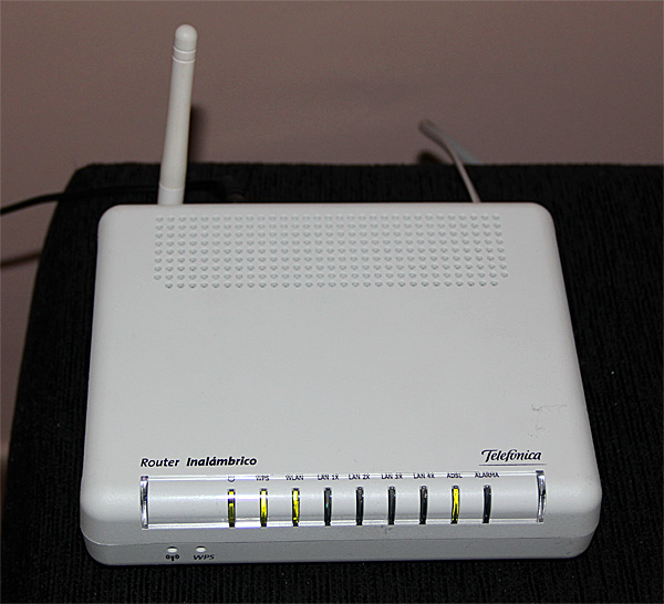В дом на горе, который мы снимаем в Испании, Интернет приходит по телефонной линии через ADSL компании Telefonica. При подключении они бесплатно предоставляют какой-то простенький ADSL-роутер. В прошлом году был вот такой, компании Comtrend.