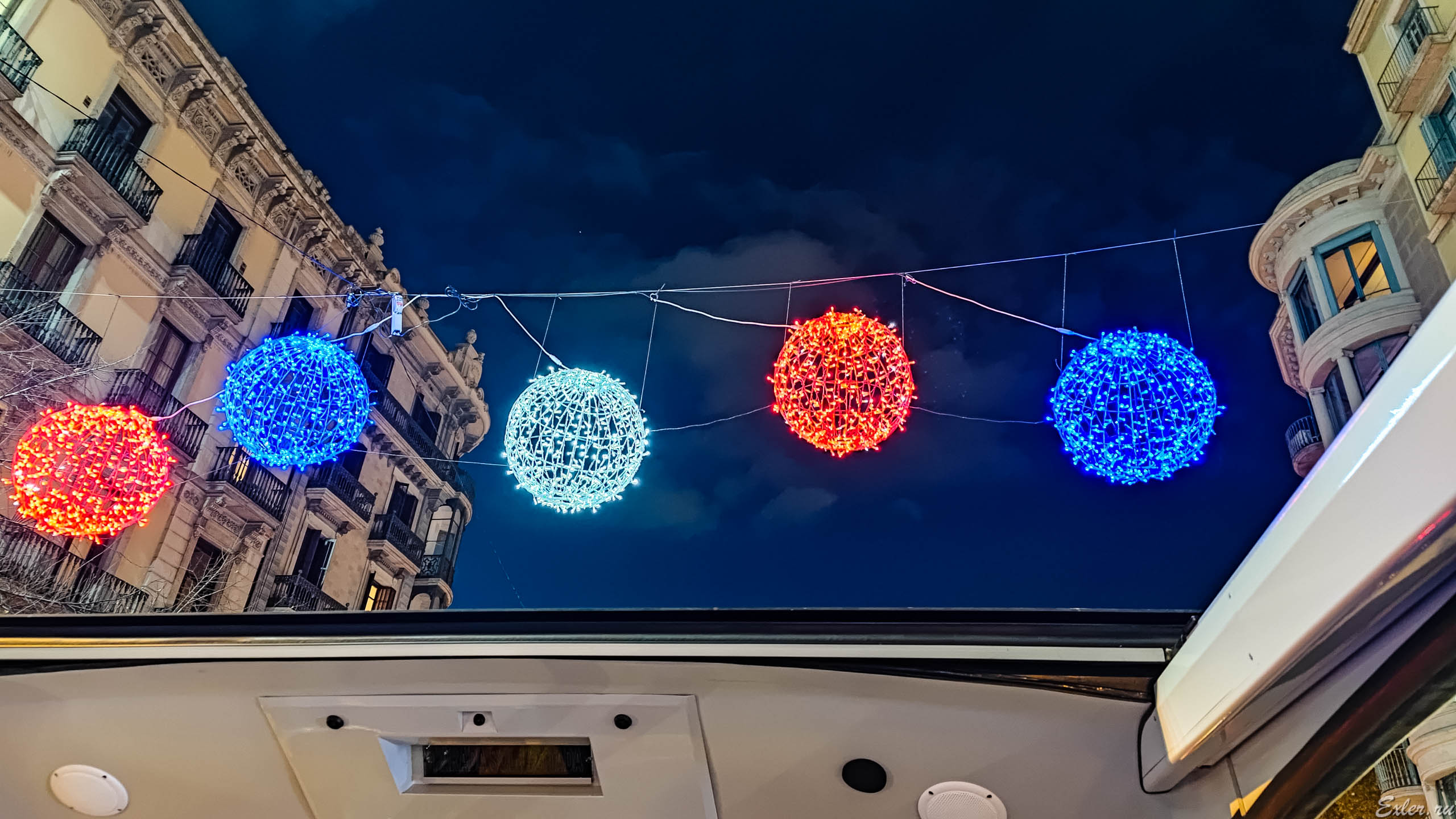 Купились мы на разводилово под названием "Рождественский тур по Барселоне": туристические барселонские двухэтажные автобусы идут по специальному маршруту, чтобы, дескать, посмотреть все рождественские украшения. Билетов на этот тур не достать, мы покупали сильно заранее. В итоге это все вылилось в почти часовое стояние в пробках в центральной части Барселоны, а маршрут как таковой был составлен так, чтобы постараться объехать стороной те места, которые действительно хорошо украшены к Рождеству. В итоге прокатались аж два часа, замерзли и почти ни черта не увидели. К тому же еще передайте этой тетеньке, которая типа как "вела экскурсию на английском", что ее кто-то очень сильно обманул - тот язык, на котором она что-то там бормотала, к английскому вообще никакого отношения не имел.