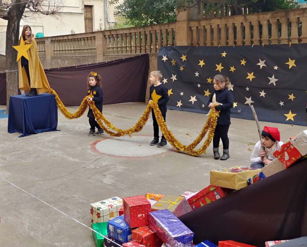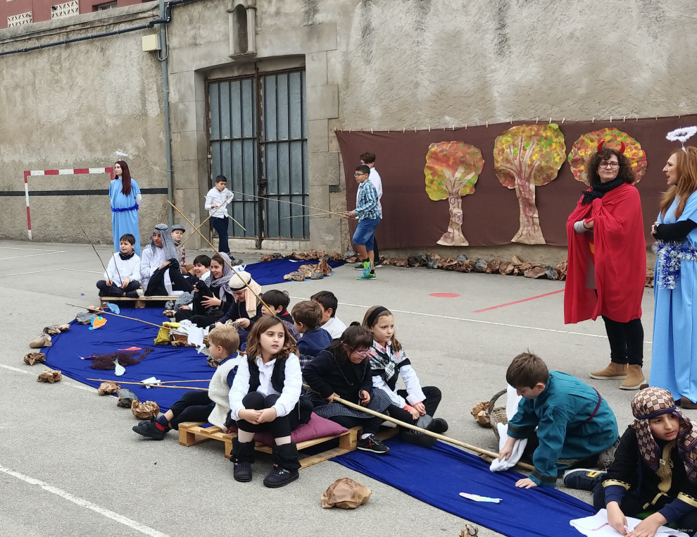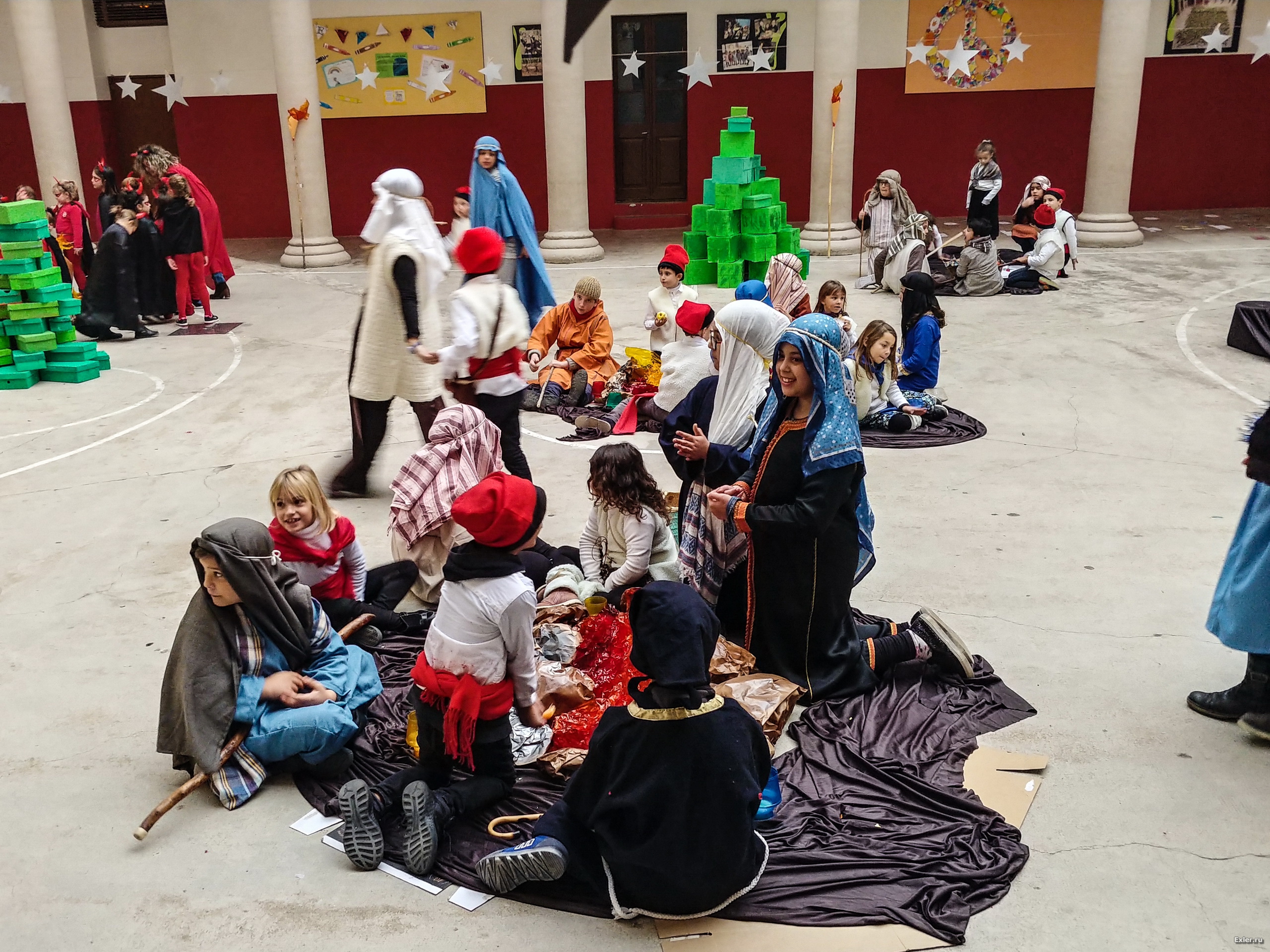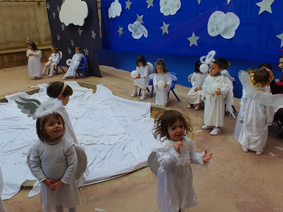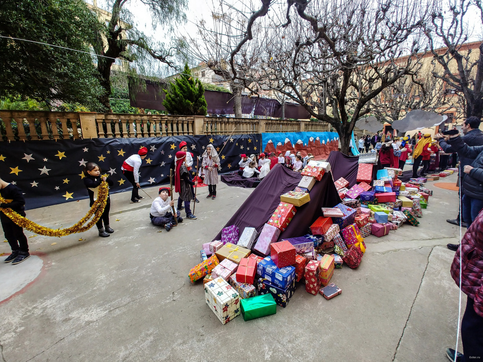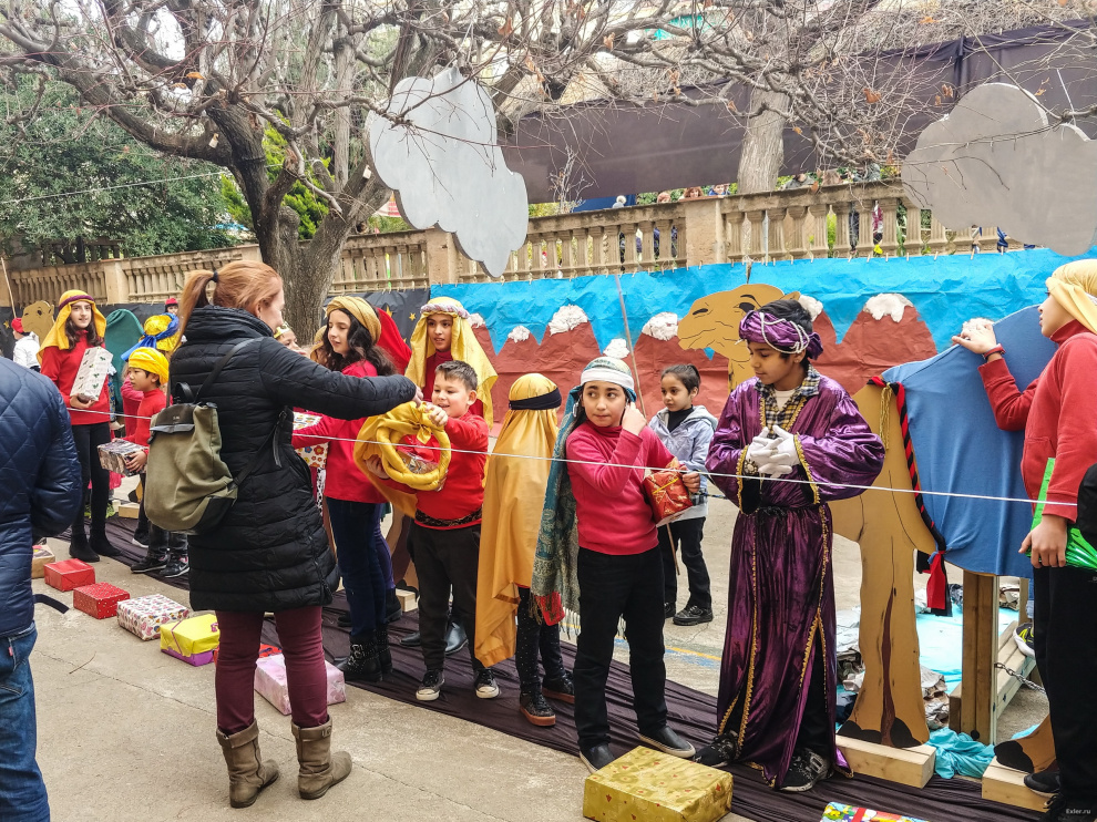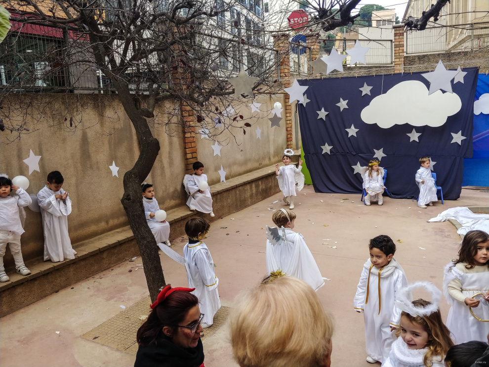 Традиционно перед Рождеством в испанских школах (не во всех, но во многих) делают силами преподавателей и детей рождественские вертепы. В школе, где учится юный Экслер, это обычно ставится с размахом. И вот небольшой репортажик того, как это выглядело вчера.