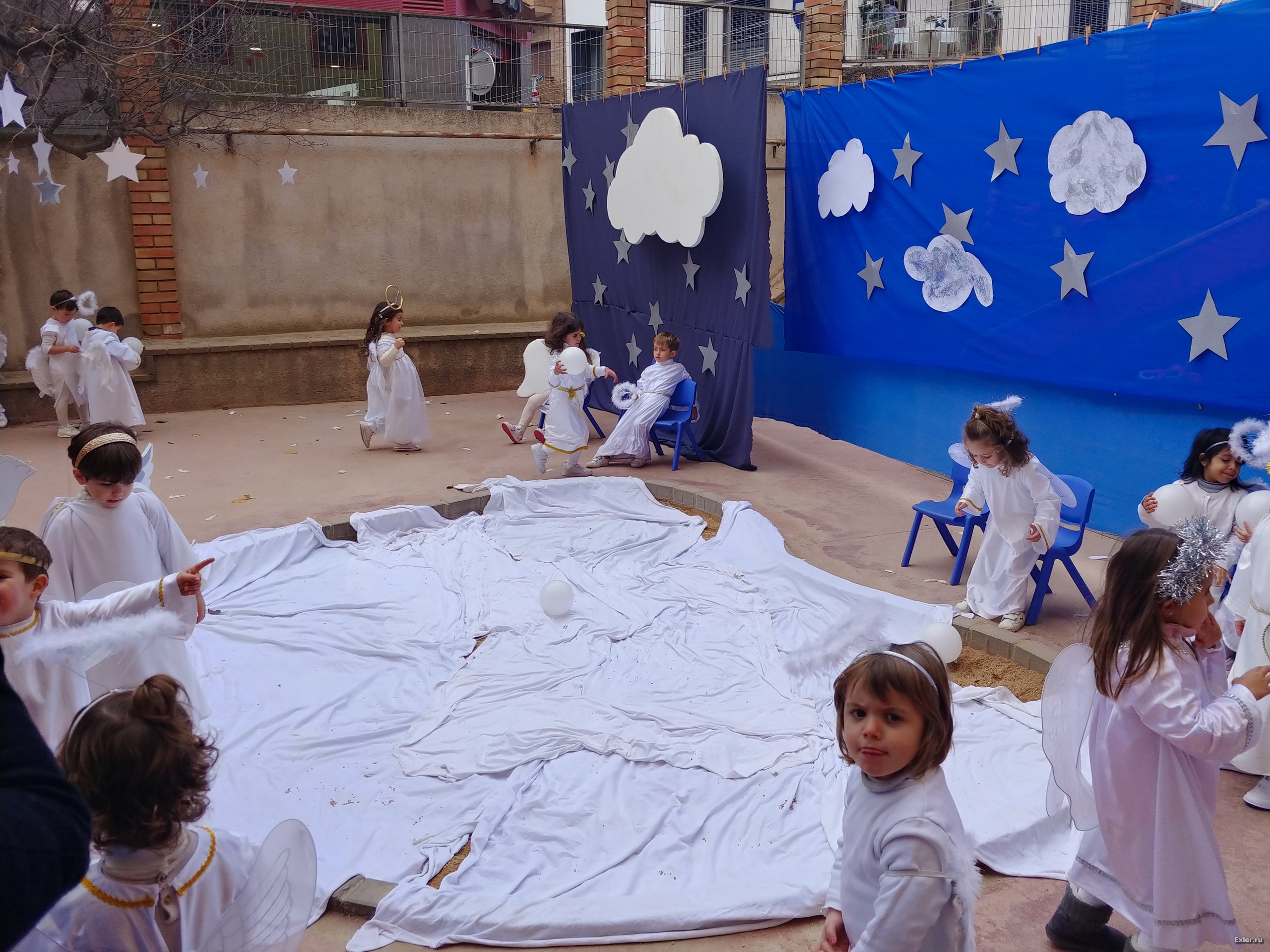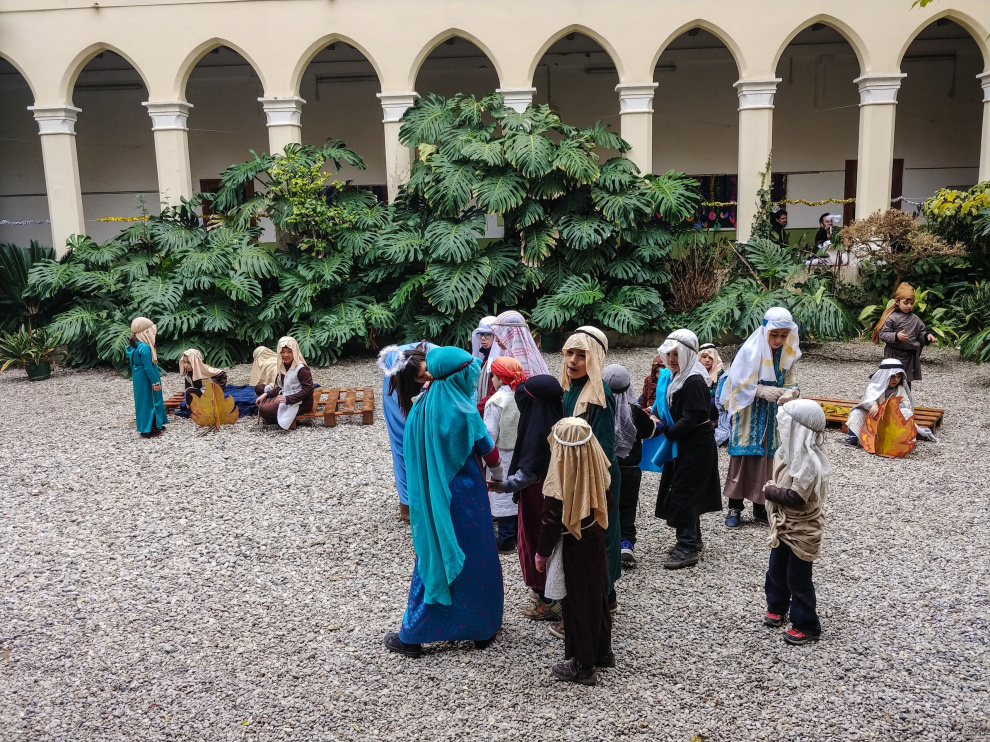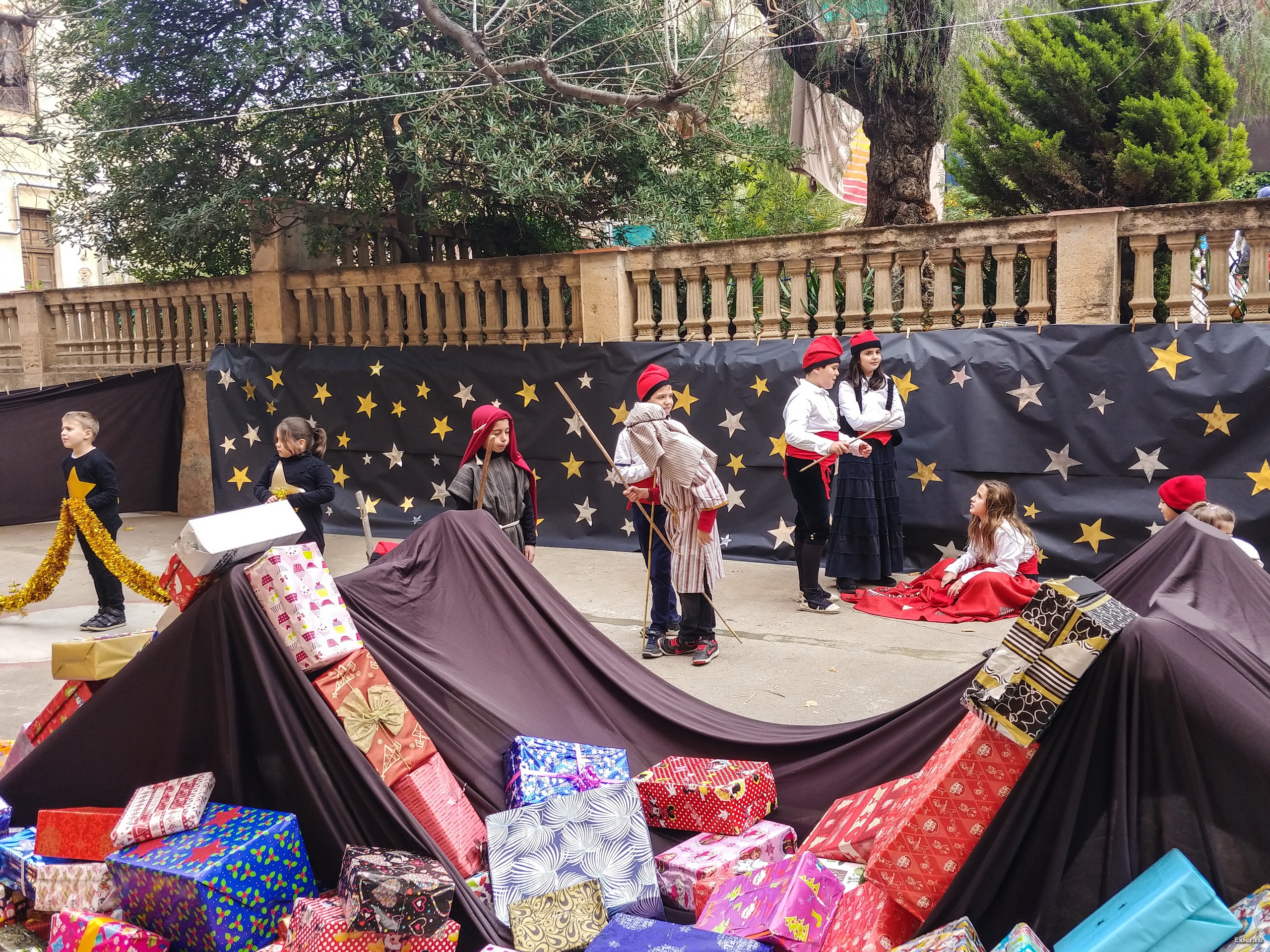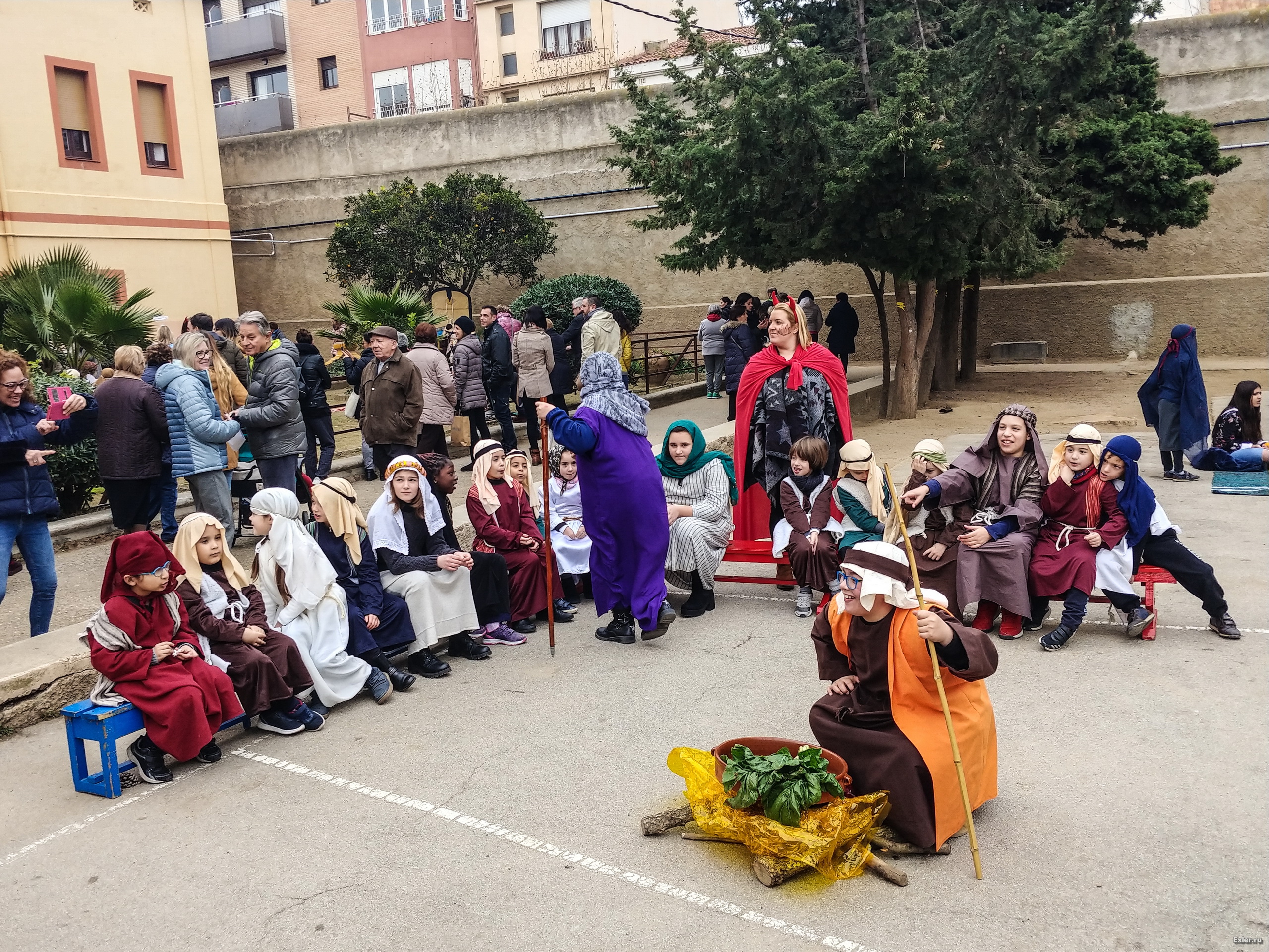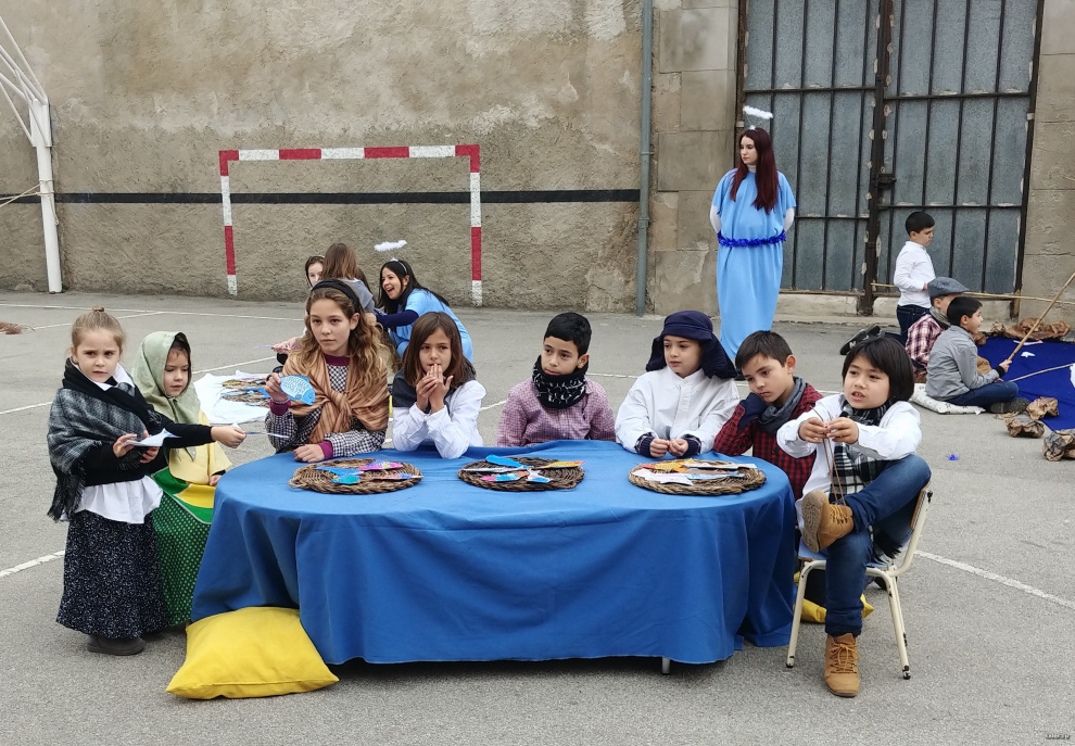 Традиционно перед Рождеством в испанских школах (не во всех, но во многих) делают силами преподавателей и детей рождественские вертепы. В школе, где учится юный Экслер, это обычно ставится с размахом. И вот небольшой репортажик того, как это выглядело вчера.