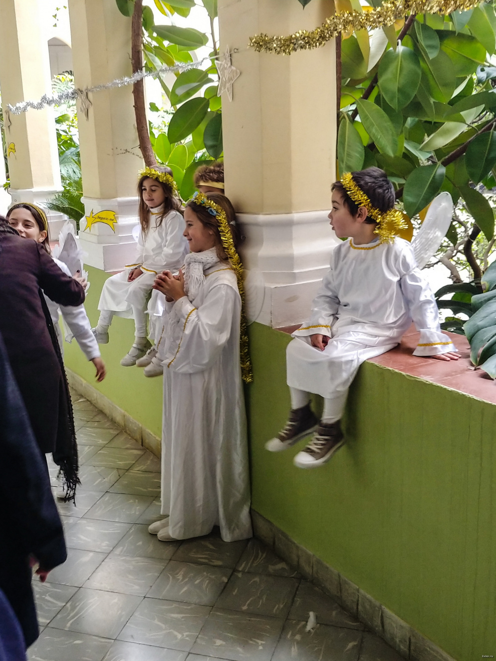 Внутри школы стоят ангелочки со сложенными ладошками. Смотрятся очень трогательно.