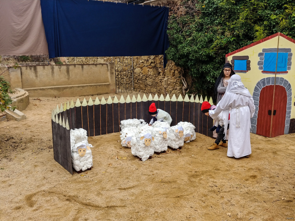Загончик с овцами и двумя древнееврейскими пастухами, которые по странному стечению обстоятельств одеты в каталанские национальные костюмы и на головах у них шапочка барретина.