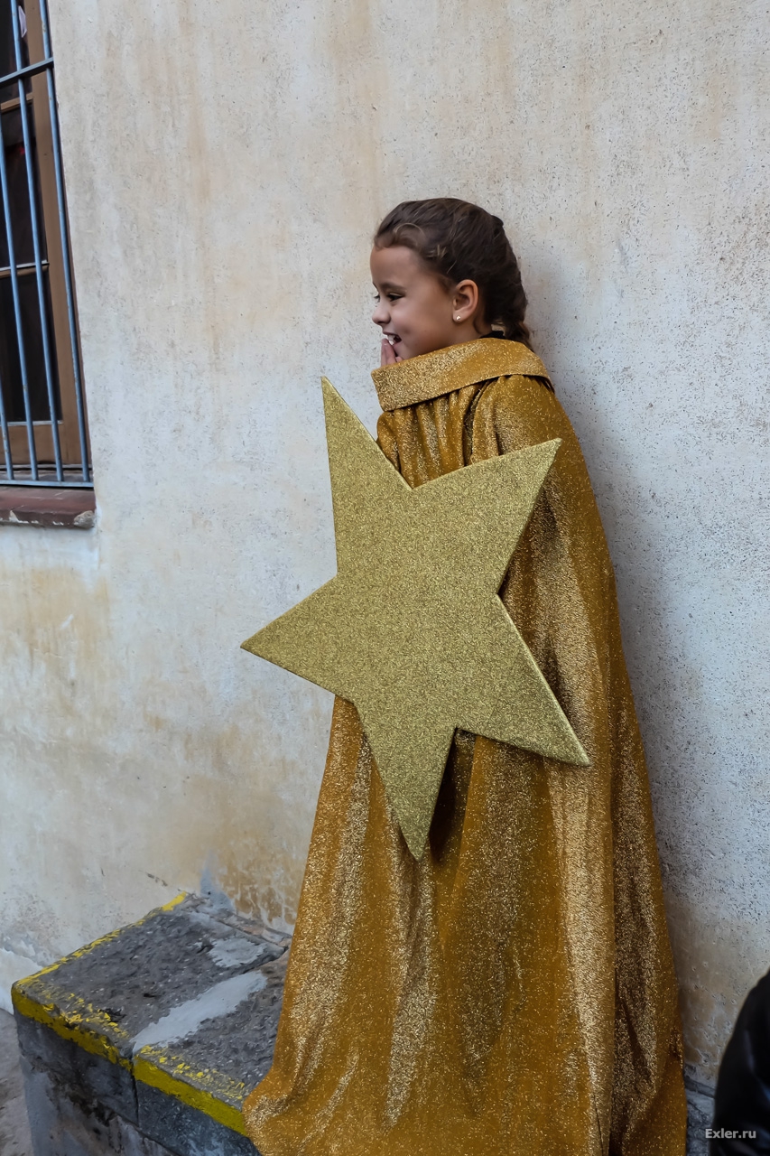 Печальный волхв. Не донес он дары, съел по дороге. В руках он держит бокату - традиционный каталанский бутерброд: багет, хамон, сыр.