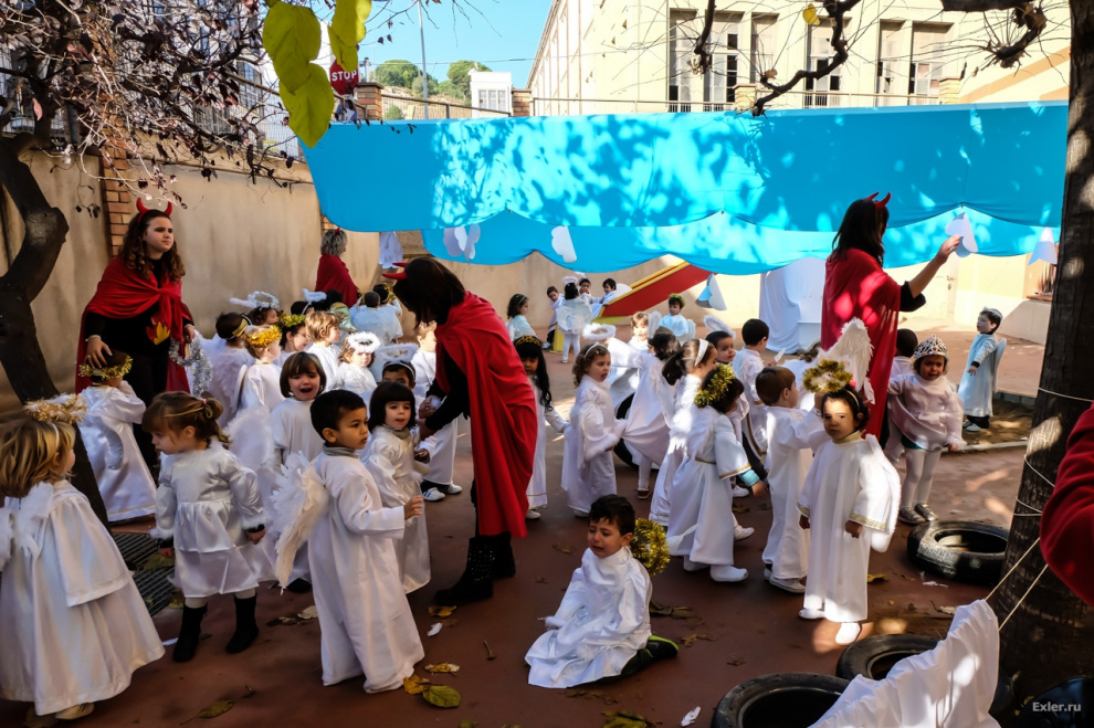 Ну традиция, не в одной католической Испании, кстати. На британщине тоже под новый год в младших классов всегда ставится Nativity Play, а в старших проводится Carol concert. И в частных школах, и в государственных и в церковных. У нас в свое время утренники были со Снегуркой и Дедом Морозом, а у них с осликами, пастухами и звездами. Праздник-то как бэ тематический, не?