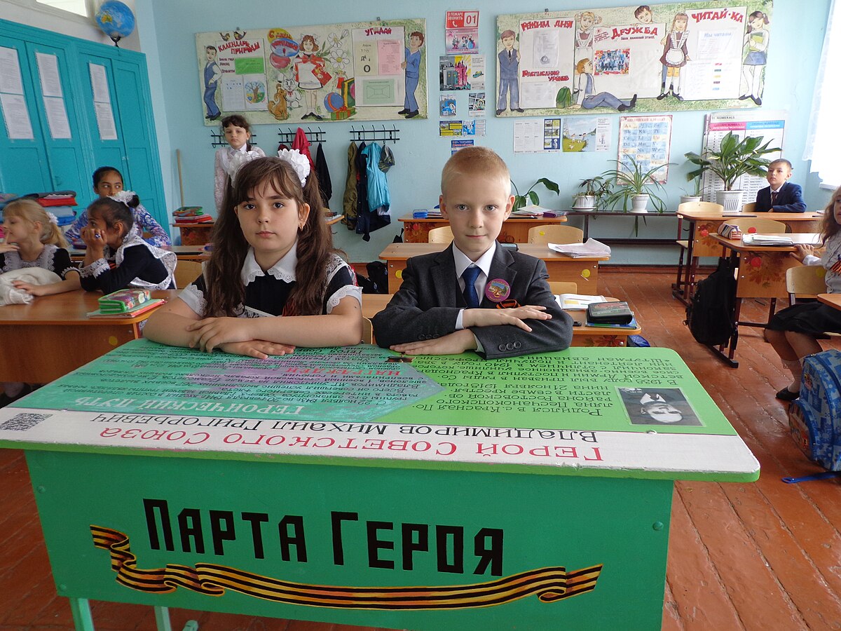 У них сейчас очень модно в классах школ ставить "парты погибших героев СВО".
