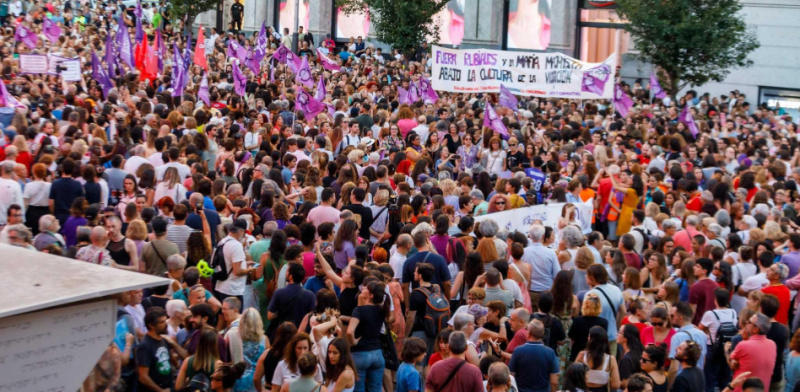 Во-вторых, вчера в Мадриде сотни людей собрались на площади Пласа-де-Кальяо, чтобы выразить свою поддержку игрокам женской национальной сборной по футболу и призвать к отставке бывшего президента Королевской испанской футбольной федерации (RFEF) Луиса Рубиалеса.