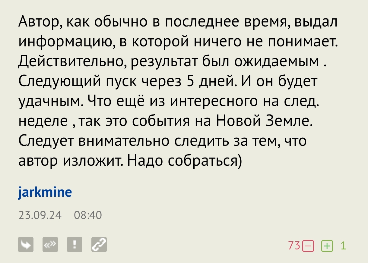 Ну что, доллар уже по 113 на бирже. Евро - почти по 120. И конца-края этому не видно. Видно только давно пробитое дно, под которым скрывается днище. Зато Путин "Орешник" запустил. Который, скорее, все-таки "Боярышник", потому что и не "Орешник" вовсе, и смысла не имеет, и этих "Орешников" у него аж обе две штуки (уже осталась одна).