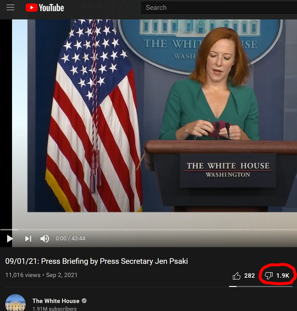 У видео President Biden's YouTube Town Hall on COVID-19 Vaccination более миллиона просмотров.