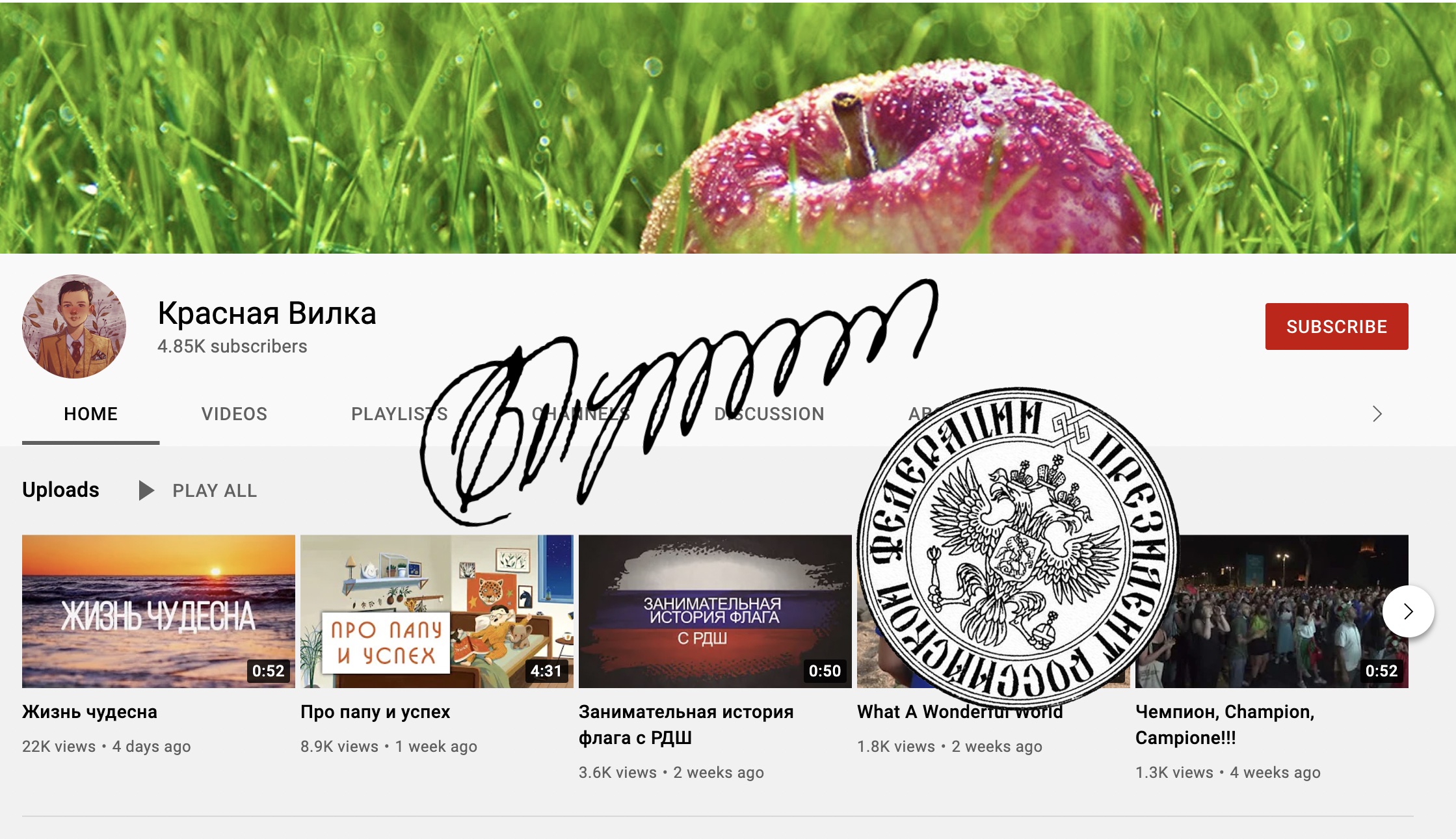 «Я делаю свою передачу, первый выпуск уже на моем ютуб-канале „Красная вилка“. Подпишитесь, пожалуйста. Я буду очень рад», — обратился к Путину 10-летний Егор из Бурятии. В ответ на это президент признался, что не понял просьбу. «А что нужно подписать? Егор, что надо подписать? Подписать что нужно? Я не понял, что я должен подписать?» — спрашивал Путин. (Отсюда.)
