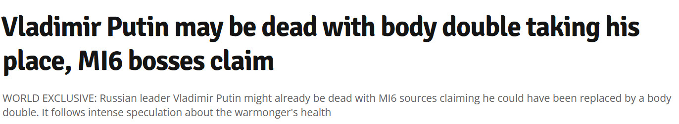 Вчера четыре британских таблоида -  Daily Star, The Sun, Mirror и Express  - выпустили вот такие заметки со ссылкой на руководителя MI6.