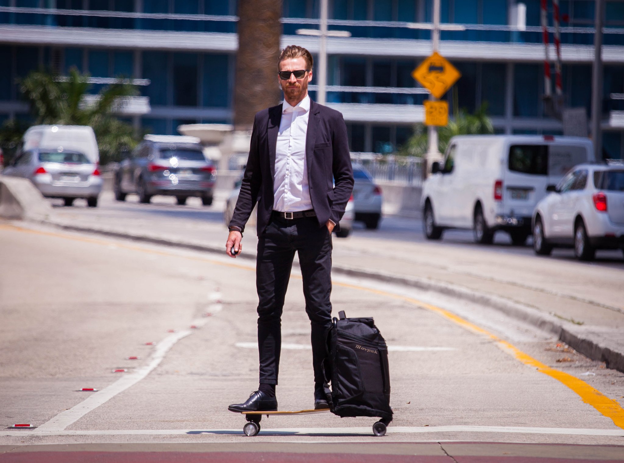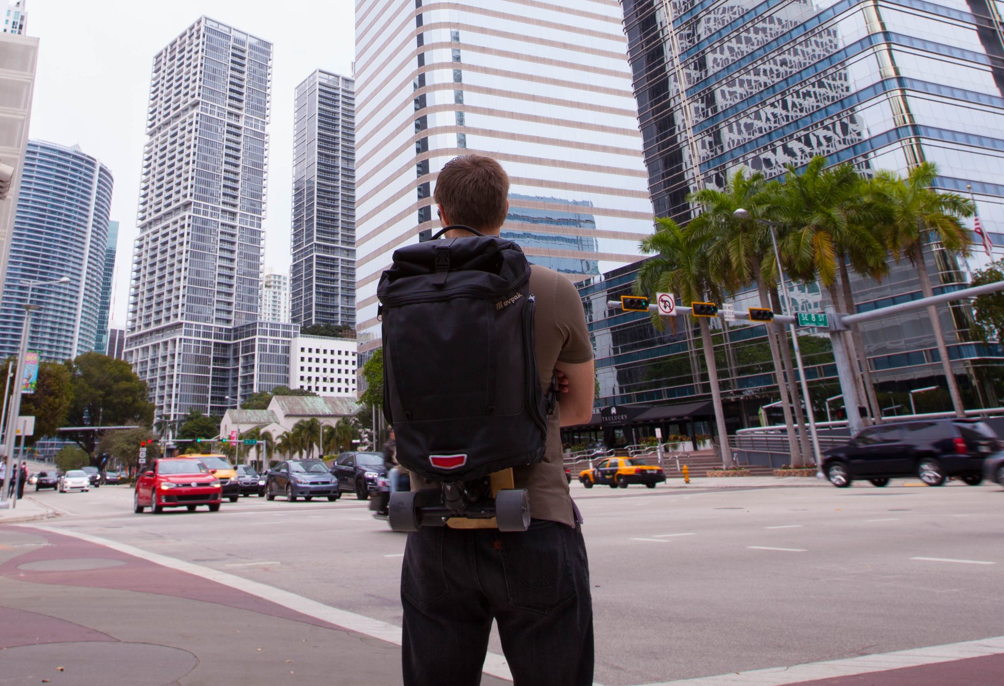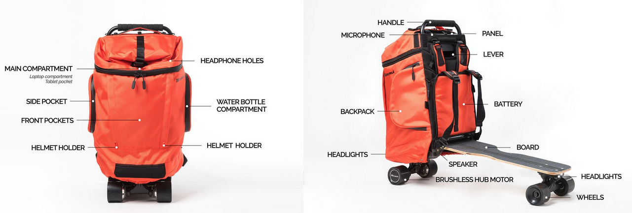 не очень понятная штука, ибо если для путешествий, то напрашиваются полеты на самолете, а там есть проблема с провозом литиевых аккумов. При путешествии на авто или ножками по горам комбинация скейт+рюкзак не очень нужна.