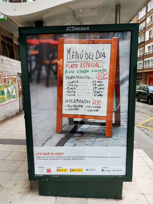 Испанская некоммерческая организация (НКО) Nueva Vida принесла извинения за свою рекламную акцию, приуроченную к Международному дню борьбы с сексуальной эксплуатацией и торговлей людьми. На одном из плакатов было изображено меню ресторана, предлагающее «русских девственниц и кокаин», что вызвало недовольство посольства России.