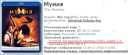 На отечественном лицензионном ДВД "Мумия" русская дорожка точно 2.0. Видимо, издатель не стал заморачиваться, а просто оттуда выдернул дорогу и вставил на диск BD.