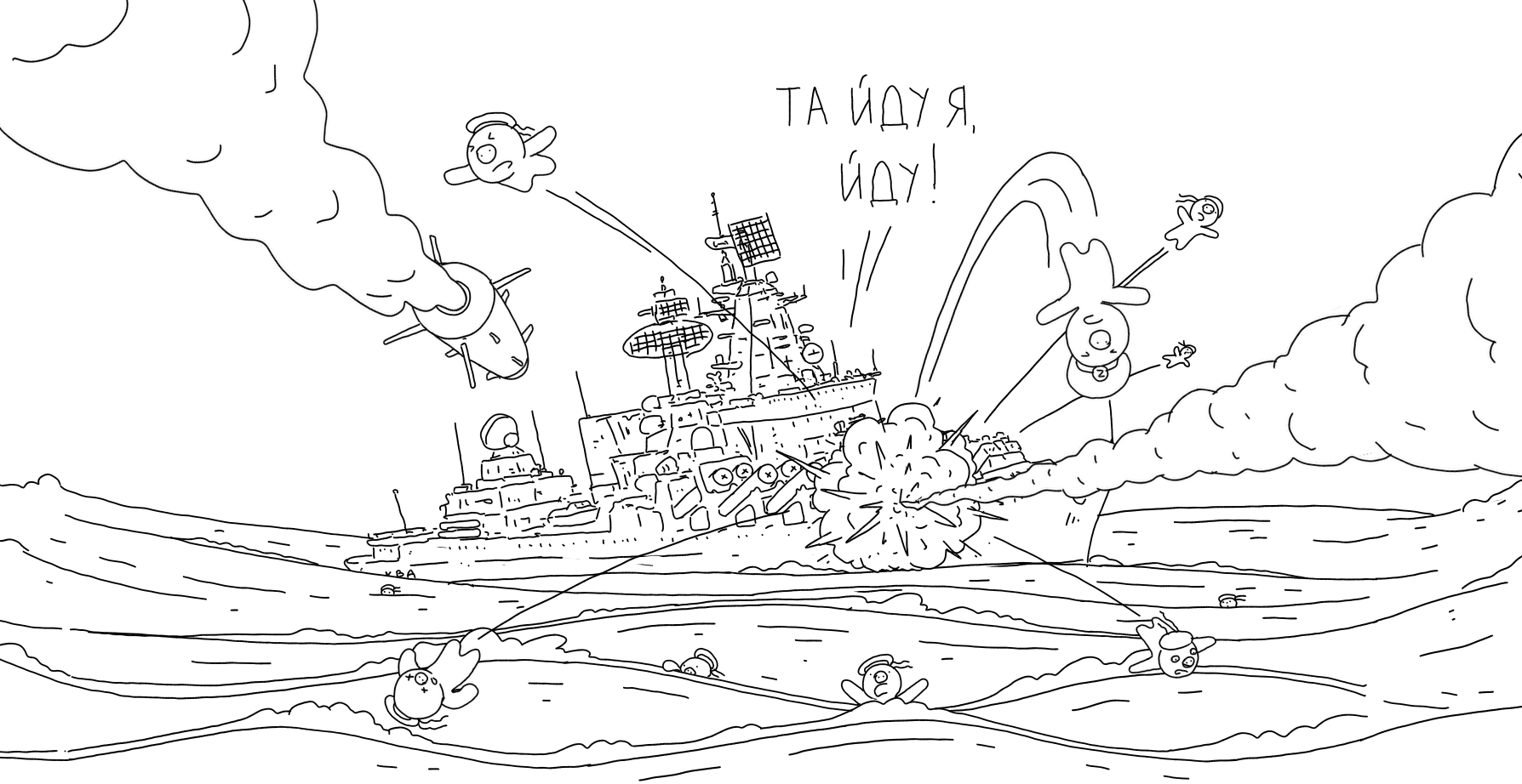 Уничтожены две коварные противокорабельные ракеты потенциального противника спецоперации. Дурачки купились на банальную приманку - третий по размеру корабль русского флота, который героическими усилиями ученых (точнее, демонтажем одного из радаров во время реконструкции в 2020г) переведен в класс подводных крейсеров.