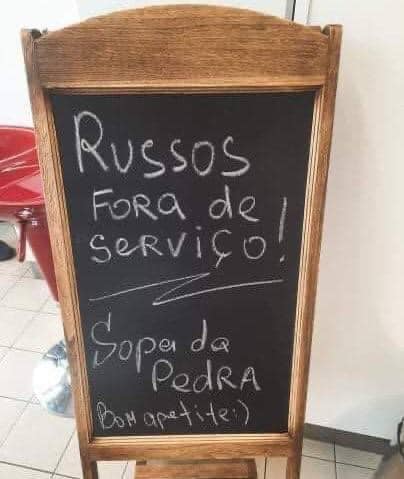 Вывеска совершенно дикая. Но есть у меня впечатление, что одной из целей войны была изоляция России от всего мира. Вводить выездные визы и запрещать народу ездить - не прокатило бы. А так отгородится Европа и остальной мир. Будет легче прививать ненависть к "вражескому" окружению. И Европа сама отгородится от России как от чумного барака.
