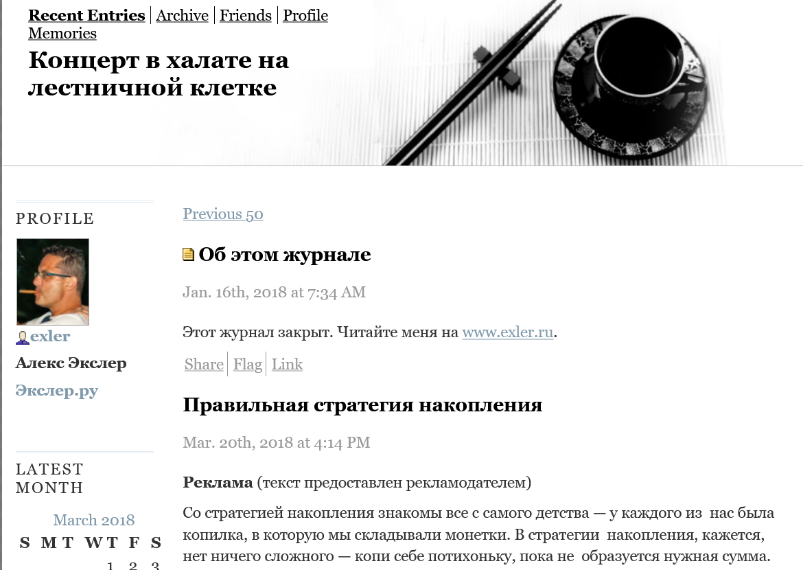 А так бы зашёл в твой жж и сразу видно, куда переходить. Просто гуглю "exler ЖЖ" и сразу выдаёт актуальный адрес без впн. Очень удобно.