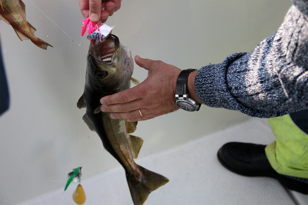 Породы рыб, кстати, попадались самые разные. Вообще здесь ловится треска, сайда, люр, макрель, пикша, менек, мольва, зубатка и морской черт.