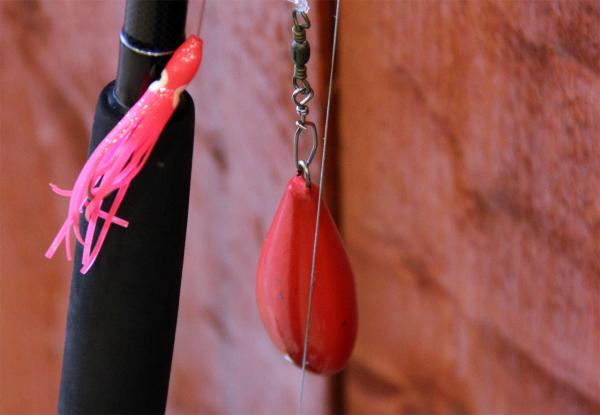 Типичные снасти выглядят здесь таким образом: спининг с удобной катушкой (глубины здесь большие, поэтому наматывать леску придется много), увесистое грузило, несколько крючков с приманкой.