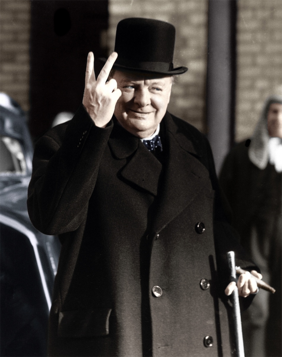 В начале 1941 года Виктор де Лавелей, бывший министр бельгийского правительства и директор вещания BBC на Бельгию, впервые выступил за использование символа "V за победу". Использование символа вскоре быстро распространилось по всей оккупированной Европе, и Уинстон Черчилль в конце концов публично одобрил символ в июле 1941 года. К тому времени символ стал широко распространен, так как движения сопротивления часто наносили граффити с его изображением, чтобы вдохновить оккупированные массы.