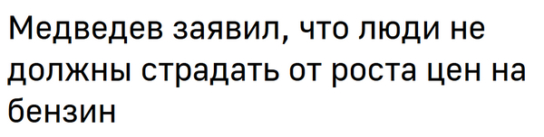 Медведев прав. А чтобы люди перестали страдать от роста цен на бензин, следует принять закон, по которому за страдания по поводу роста цен на бензин людей будут штрафовать. За повторные страдания - административка. А если еще будут страдать по сговору и группой - тогда сразу уголовка. Только так людей можно сделать счастливыми, только так.