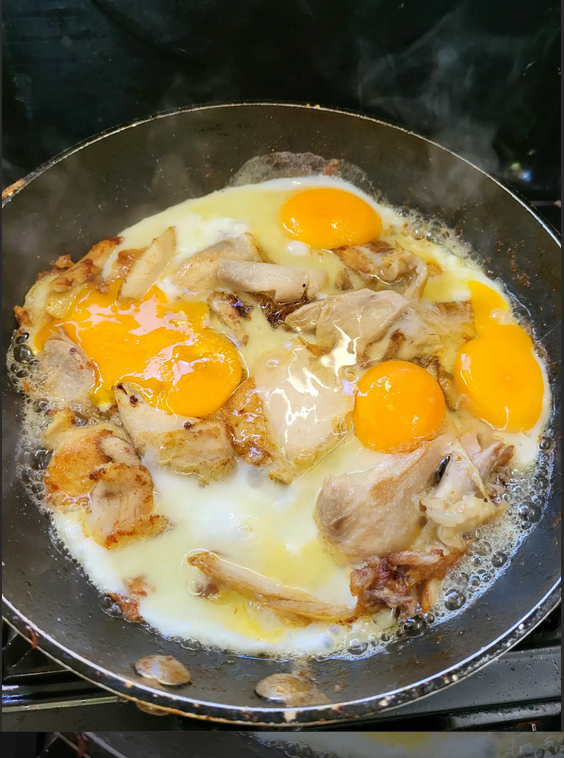 Самая вкусная яишня - на чугуне и с хорошим куском сливочного масла. Лучше топлёного.