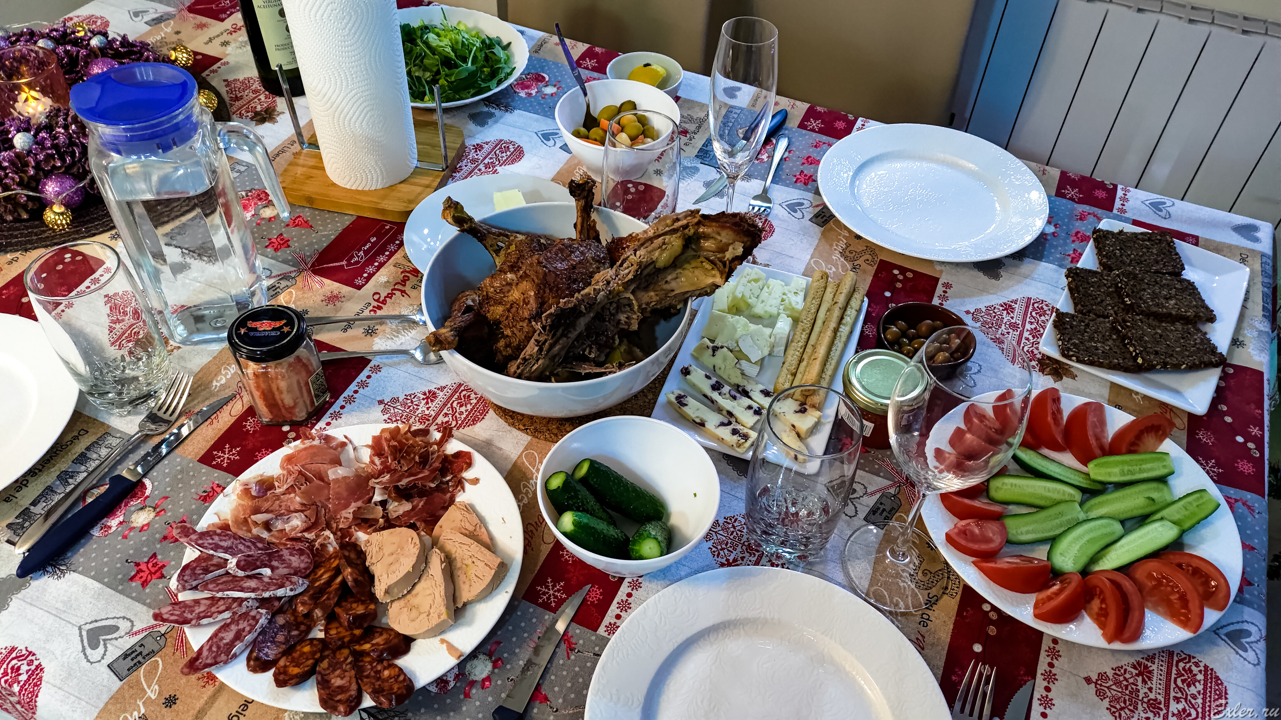 У нас в Сочельник (вечером 24-го) традиционно постный стол. Без мяса, но с рыбой, в основном это карп (иногда щука). Спиртного тоже нет. Потому что это время ожидания.