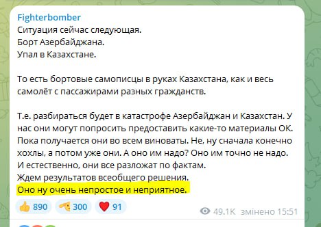 ❗️Понимая, что подбит  гражданский борт, Грозный  отказал ему в посадке в Махачкале и направил в Актау - то есть отправил людей  «погибать» в море, и это самое гадкое во всей истории.