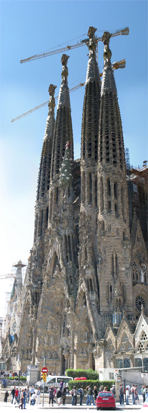 Наконец-то увидел и заснял Церковь святого семейства в Барселоне в хорошую погоду. При щелчке по превьюшке откроется полноразмер 2608х7255 (3,5 мега) - можно рассмотреть подробности.