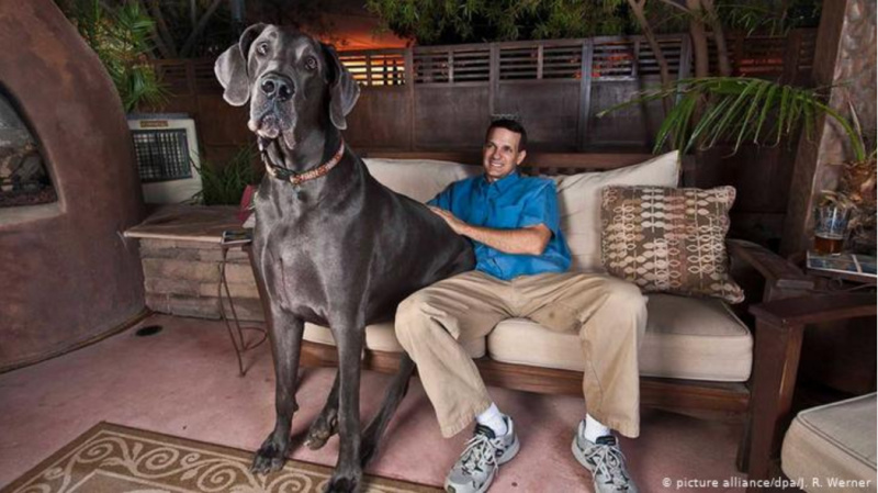 Читал статью о том, как собак научили по запаху определять наличие у человека COVID-19, в конце статьи наткнулся на вот такую фотографию самой большой собаки в мире.
