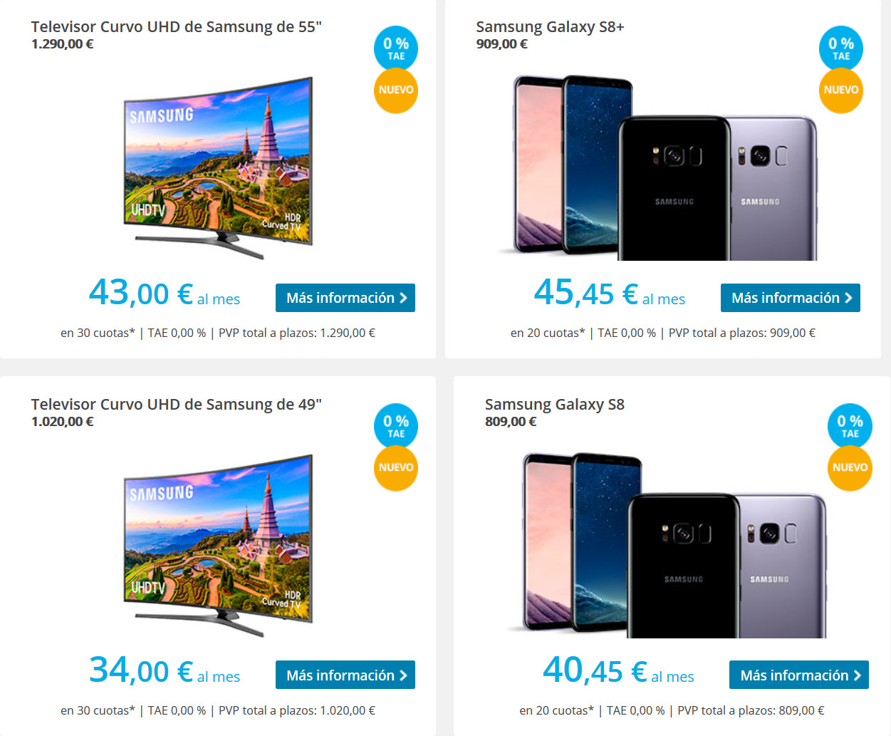 Я тут думал, как добывать Sasmung Galaxy S8 Plus: контракт ради него заключать не хотелось, там за всякие услуги сотовой связи придется платить дороже, если номер на новый контракт переводить. И вдруг смотрю, а в моем банке всякие спецпредложения - тоже от Samsung. Причем предложения очень даже толковые: например, Samsung Galaxy S8+ или S8 без процентов вразбивку на 10 или 20 месяцев. Хочешь 20 месяцев по 45 евро, хочешь 10 месяцев по 90. Ну, вполне терпимо, особенно учитывая реальные 0 процентов (я проверил). Цена - совершенно адекватная, в Медиамаркте за те же деньги и продаются, а если искать дешевле - сэкономить можно максимум 20 евро, при этом доставка почти месяц и никакой рассрочки.