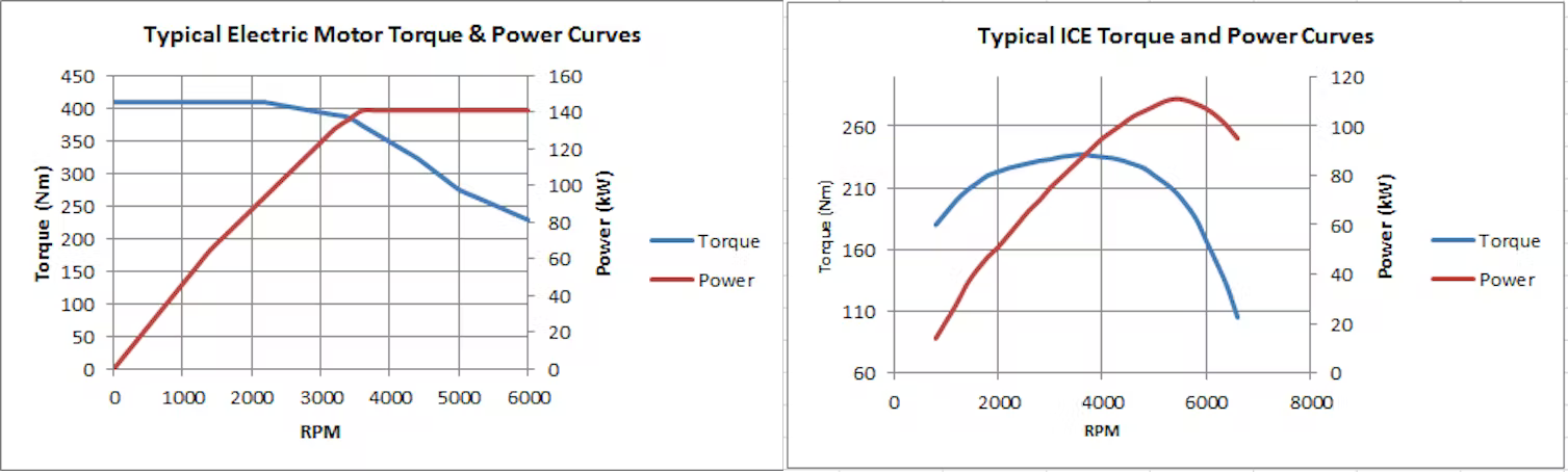 Одно из существенных отличий электродвигателя от ДВС - высокий крутящий момент прямо "от нуля", в то время как ДВС, чтобы выдать максимальный момент, нужно изрядно раскрутиться.