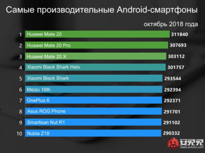 Тестировал очередной смартфончик, посмотрел в рейтинговую табличку AnTuTu на топовые по быстродействию смартфоны.