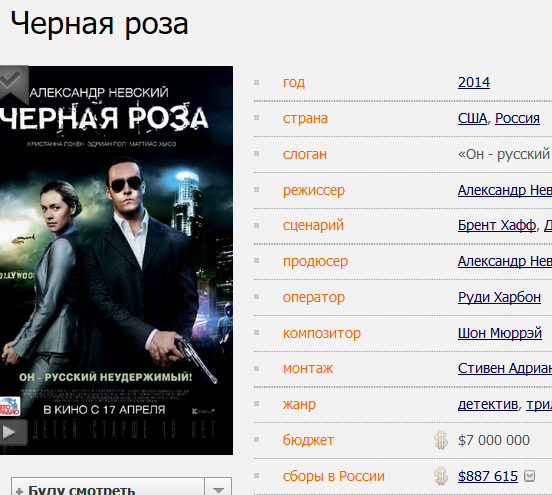 Идем на сайт ЕАИС и пробиваем там. Почти ровно 2 миллиона рублей. То есть $30 тысяч. Что значительно больше похоже на правду. Почему на "Кинопоиске" сведения завышены на порядок и умножены на два?
