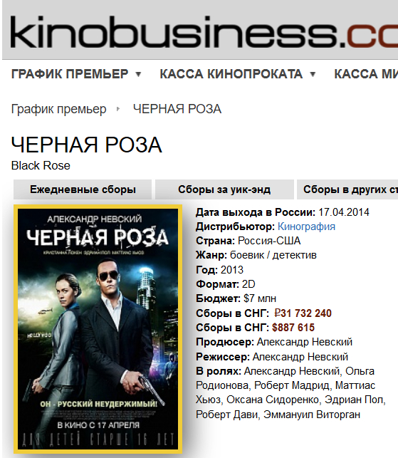Upd: Впрочем, на Kinobusiness.com приводятся данные, совпадающие с "Кинопоиском".
