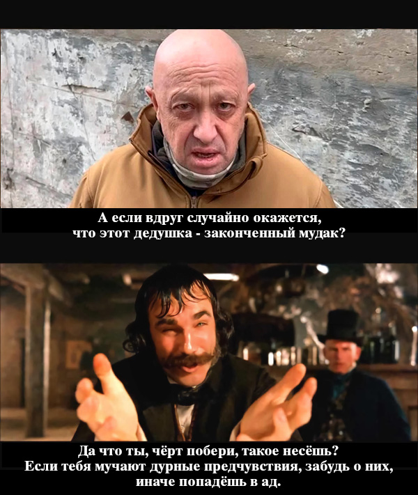 Чтобы там ни было, существует некая интрига, каким образом этот человек уйдет со сцены. Это его реально так бомбит из за нелёгких вечеров в Бахмуте или задумал чего. Склоняюсь к первой версии, но будем посмотреть.