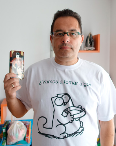 Это обычная футболка с картинкой и надписью. В руках держу чехол - фото на чехле, по-моему, смотрится замечательно.