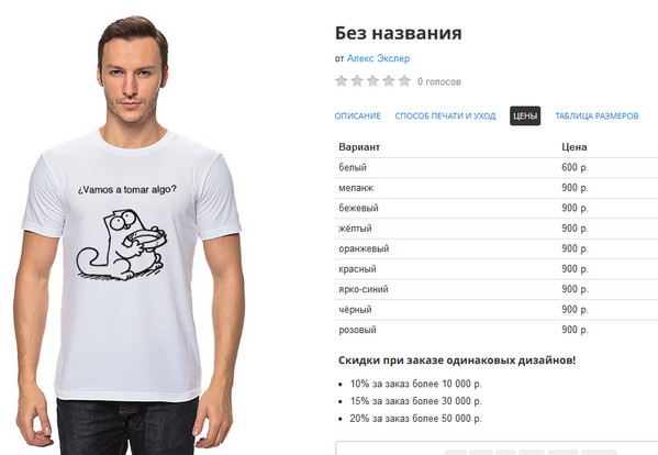 Дизайн вещей вашей разработки можно не только сохранять, но и выставлять на продажу на этом же сайте.