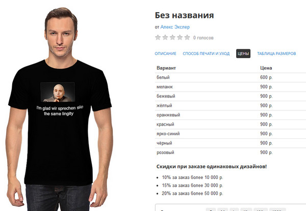 Александр Амелькин: Прикольный сайт. Редактор хороший. И удобно, что можно сохранять и делиться сохранёнными дизайнами. Плохо, что на толстовках могут печатать только на верней части, а на кармане - не могут.