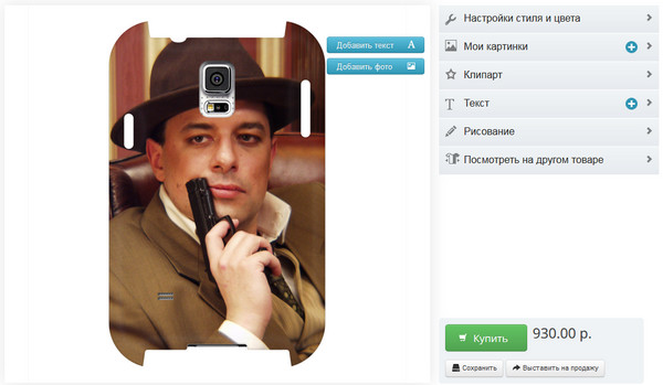 Аналогичным образом можно создавать свой дизайн самых разнообразных вещей и предметов, представленных на сайте. Вот, например, чехол для Samsung Galaxy S5. Кстати, картинка печатается не только на задней поверхности, но и на боковых поверхностях, что выглядит просто отлично.