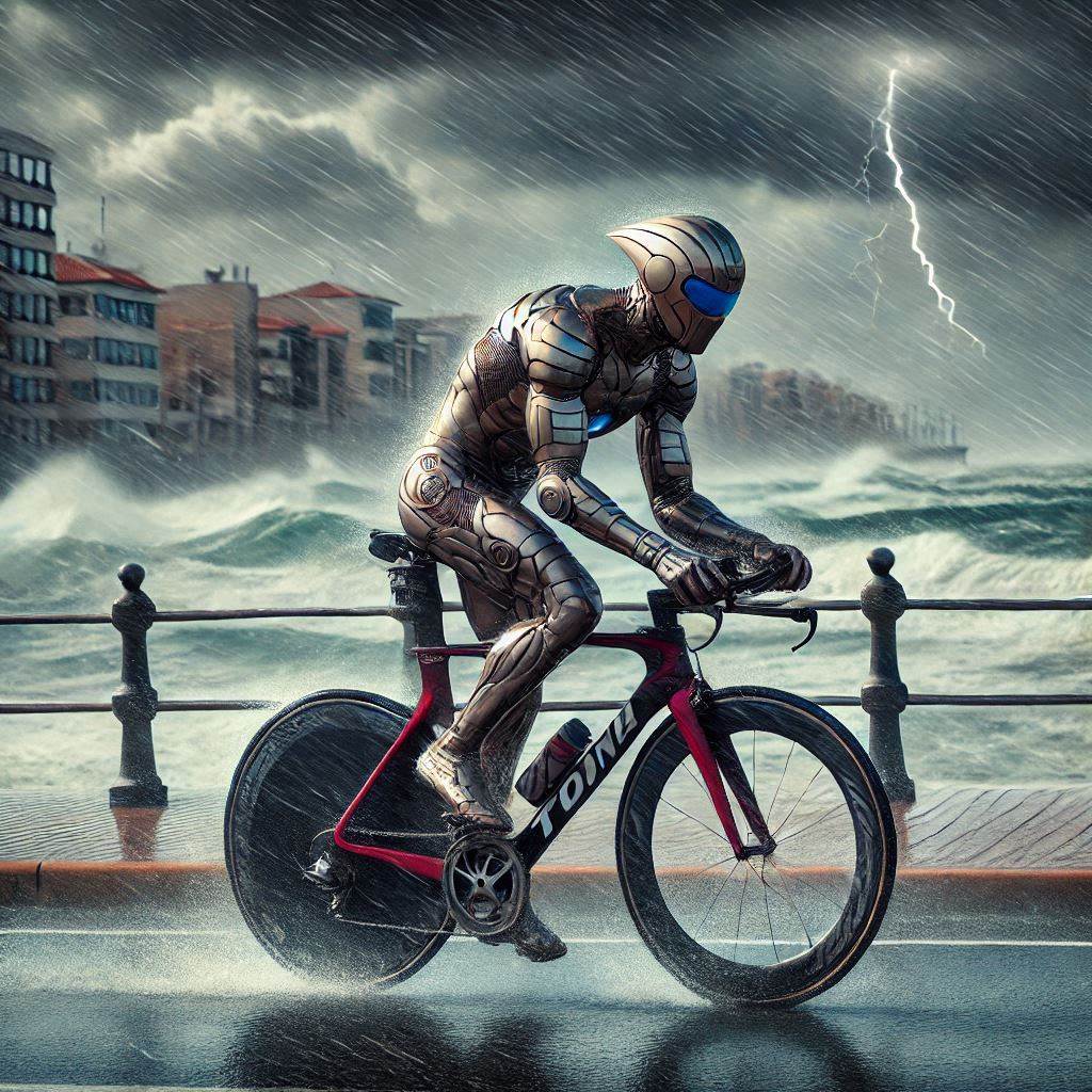 У нас просто сильный ветер. Ехал на велике обратно против ветра: все, кто на великах без электроподдержки - шли пешком и катили велик руками, ехать было невозможно. Один только айронменщик выгребал на самых низких передачах, но то айронменщик.